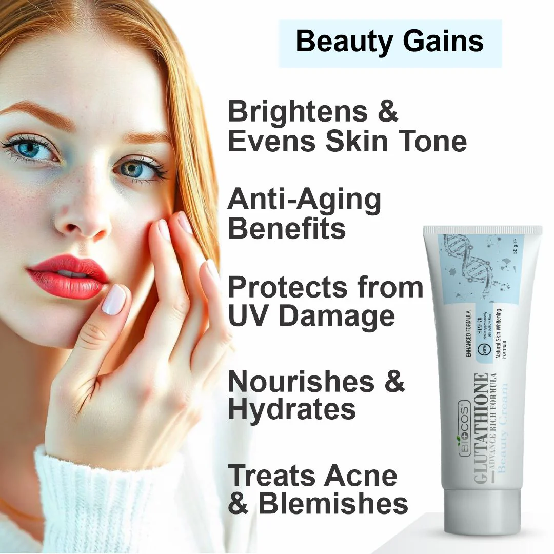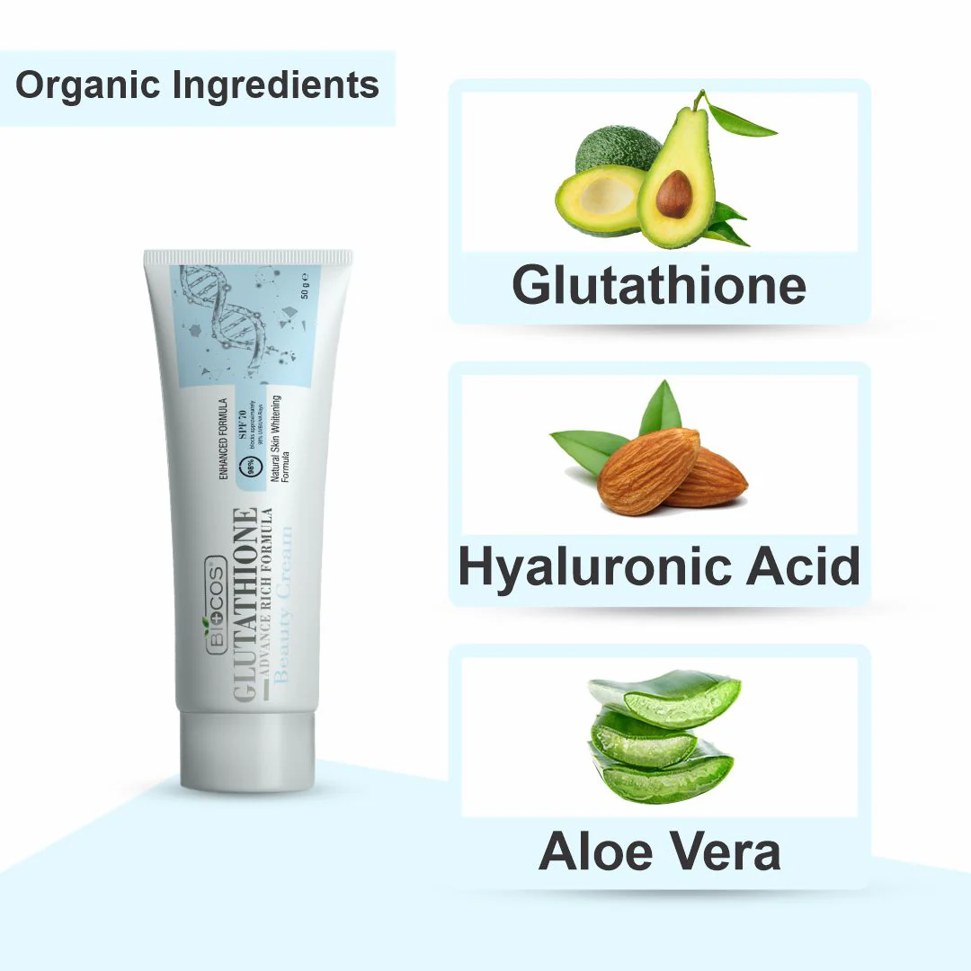 Illumine et unifie le teint : Formulée avec du glutathion et de la vitamine C, cette crème aide à éclaircir les taches brunes et l’hyperpigmentation, pour un teint éclatant et uniforme.