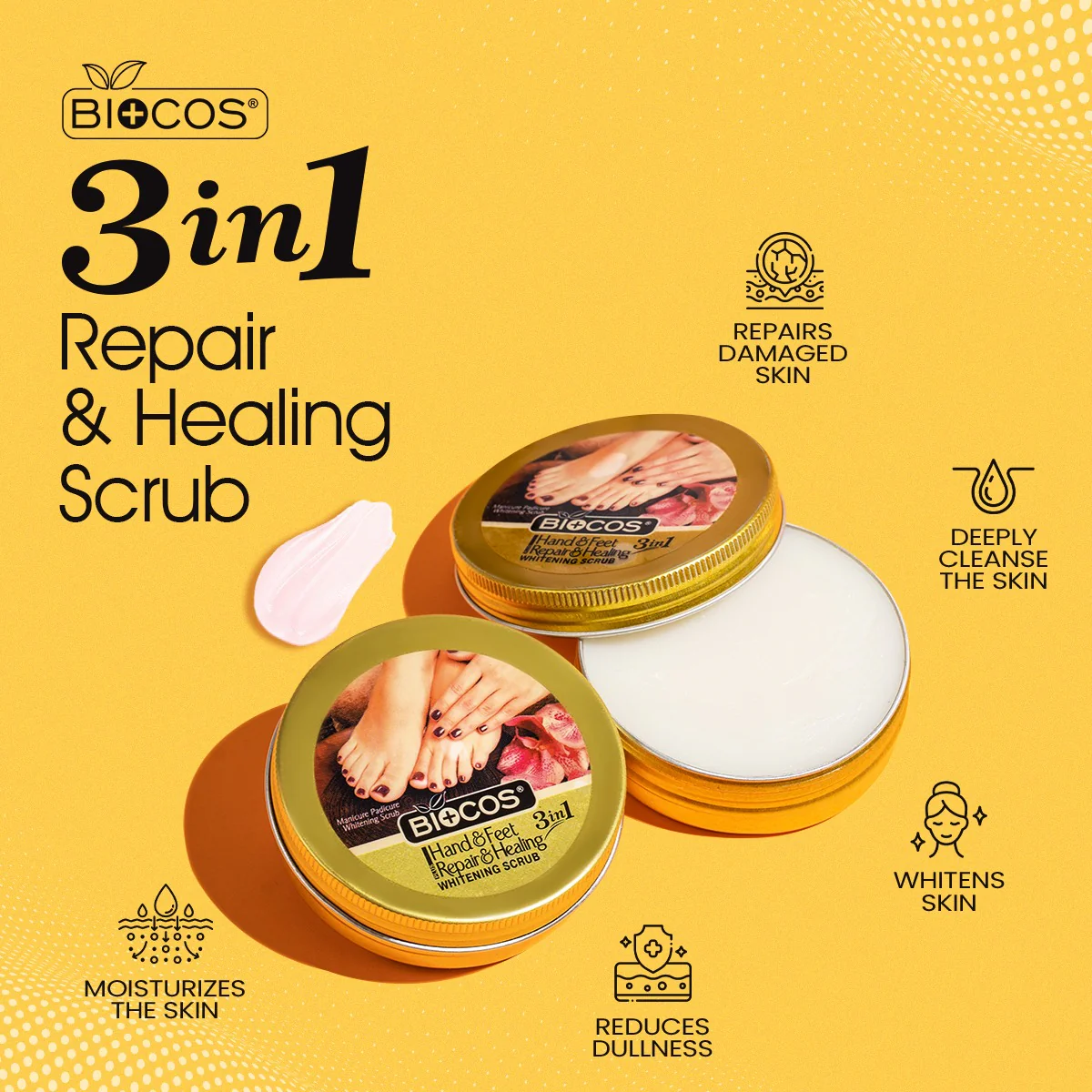 Hydratation et douceur intenses : Riche en huile d'olive et en huile de jojoba, ce gommage hydrate en profondeur les peaux sèches, laissant les mains et les pieds doux, nourris et lisses à chaque utilisation.